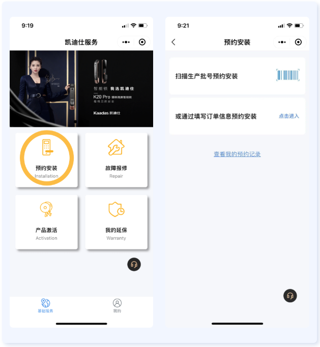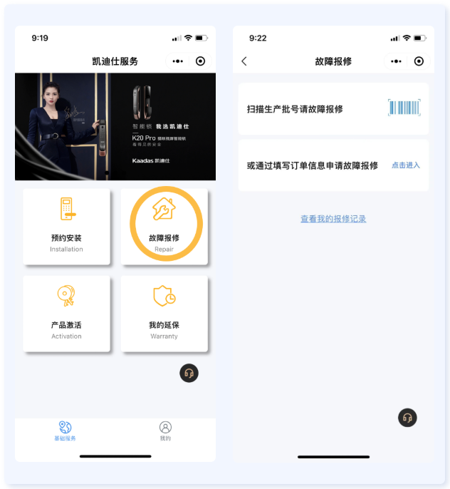 此次新(xin)增了(le)【預約安(an)裝(zhuang)】、【故障報修】、