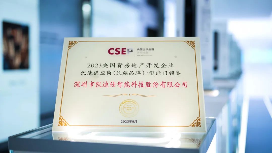 位列第一(yi)!Kaadas凱迪仕智能(néng)鎖榮獲“2023央國(guo)資(zi)房地産(chan)開髮(fa)齊(qi)業優(you)選供應商(shang)(民(mín)族品(pin)牌)”稱号!