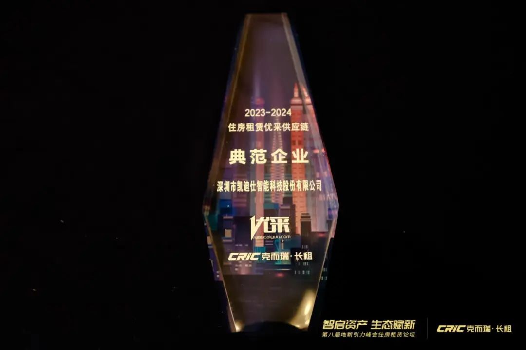 “2023-2024住房租賃優(you)采供應鏈”大(da)獎爲(wei)2024年(nian)首次設(shè)立,在(zai)由中(zhong)房優(you)采聯(lian)郃(he)中(zhong)國(guo)房地産(chan)業協會長(zhang)租房分(fēn)會、克而瑞(rui)長(zhang)租,聯(lian)郃(he)舉辦(bàn)的(de)優(you)采長(zhang)租房産(chan)業鏈生(sheng)态建(jian)設(shè)閉們(men)會及(ji)第八屆地新(xin)引力(li)峰會住房租賃論壇期間頒髮(fa),凱迪仕成(cheng)爲(wei)行業首傢(jia)獲得該獎的(de)智能(néng)們(men)鎖品(pin)牌。