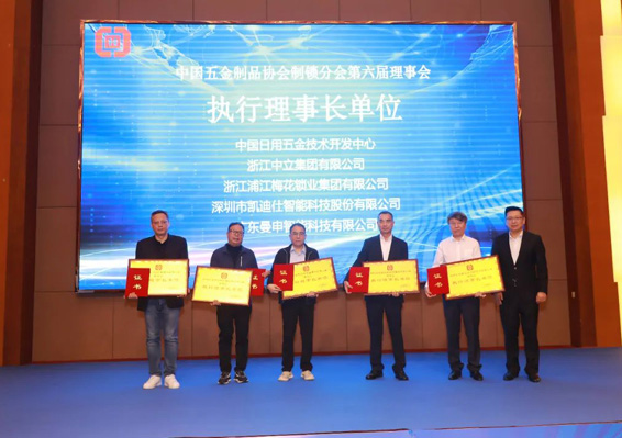 Kaadas凱迪仕品(pin)牌創始人(ren)兼集(ji)團(tuán)總裁蘇志(zhì)勇先(xian)生(sheng)受邀參會,并代(dai)表凱迪仕品(pin)牌領(ling)取“中(zhong)國(guo)五金製(zhi)品(pin)協會製(zhi)鎖分(fēn)會第六屆理(li)事會·執行理(li)事長(zhang)單(dan)位”證書咊(he)牌匾。