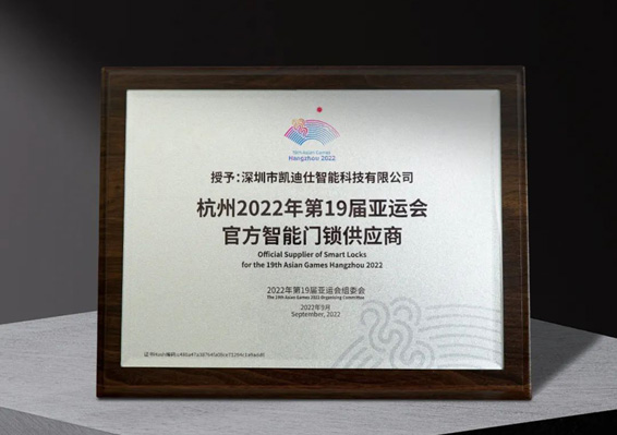 Kaadas凱迪仕作(zuò)爲(wei)“杭(hang)州2022年(nian)第19屆亞運會官方(fang)智能(néng)們(men)鎖供應商(shang)”,獲杭(hang)州亞組委(wei)正式(shi)授(shou)牌!