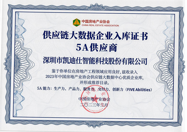 與此同時,凱迪仕同步被收錄2023年(nian)中(zhong)國(guo)房地産(chan)業協會5A供應商(shang)齊(qi)業庫(5A,即生(sheng)産(chan)力(li)、産(chan)品(pin)力(li)、服務(wu)力(li)、交付力(li)、創新(xin)力(li)),品(pin)牌在(zai)工(gong)程(cheng)市(shi)場(chang)的(de)優(you)異表現(xian)備(bei)受行業權威肯定。