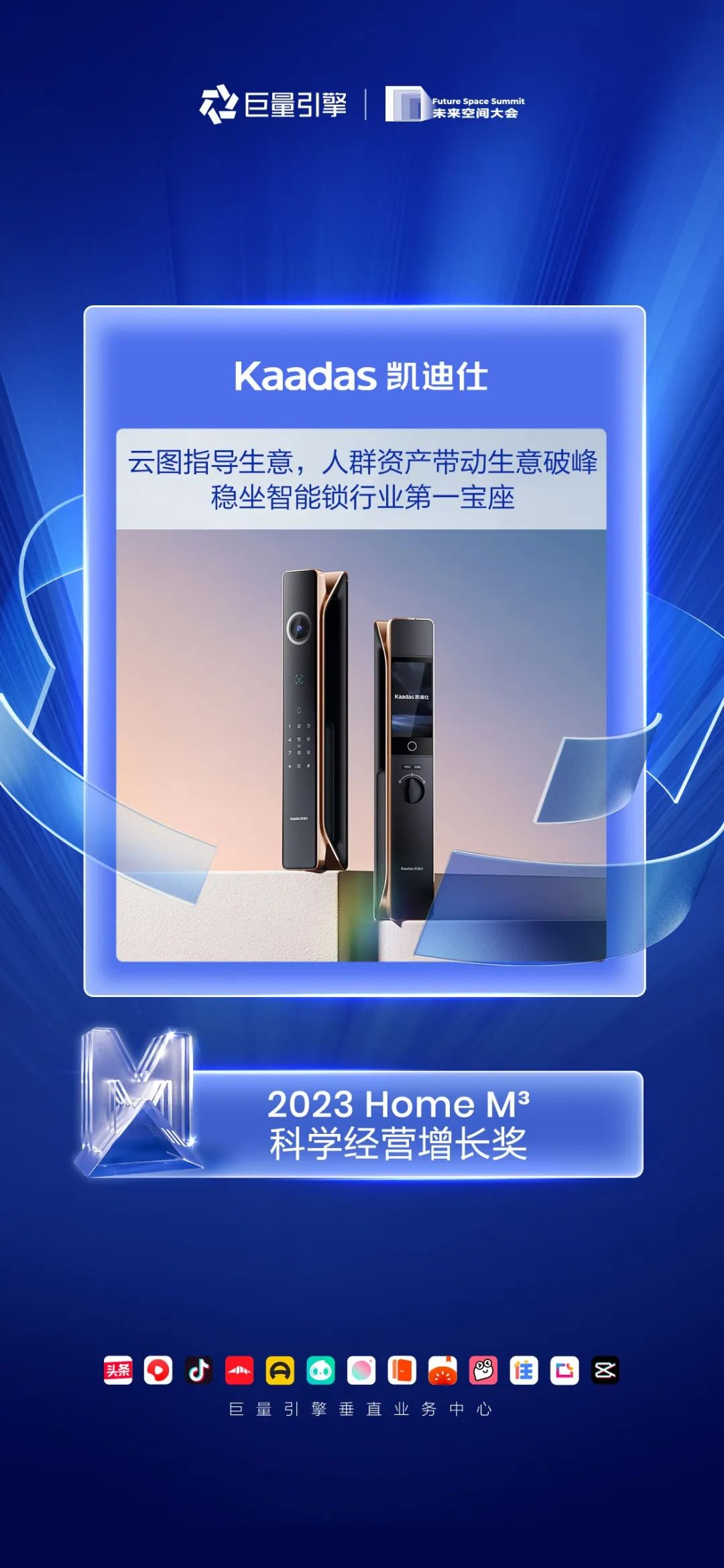 Kaadas凱迪仕受邀出席巨量引擎2024未來空間大(da)會,品(pin)牌榮獲「2023 Home M³·科(ke)學(xué)經(jing)營(ying)增長(zhang)獎」!