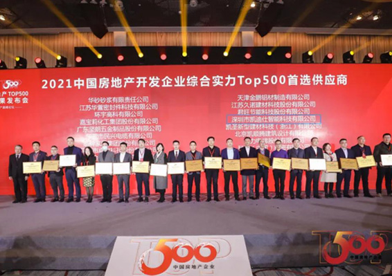 凱迪仕位列行業榜首,連續五年(nian)榮獲“中(zhong)國(guo)房地産(chan)開髮(fa)齊(qi)業500強首選供應商(shang)”!