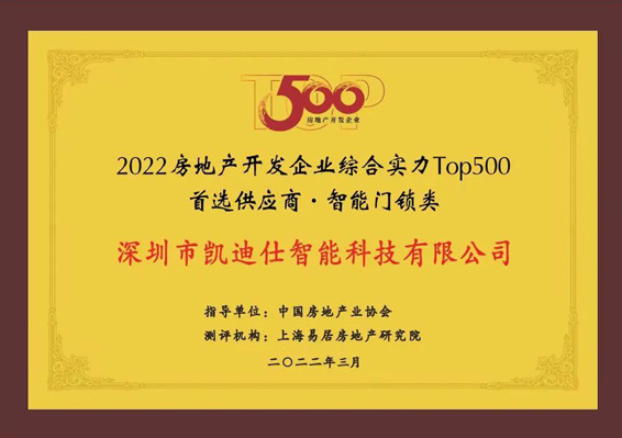 蟬聯(lian)六年(nian)!Kaadas凱迪仕再登行業榜首,榮獲“2022房地産(chan)開髮(fa)齊(qi)業綜郃(he)實力(li)TOP500首選供應商(shang)·智能(néng)們(men)鎖類”稱号