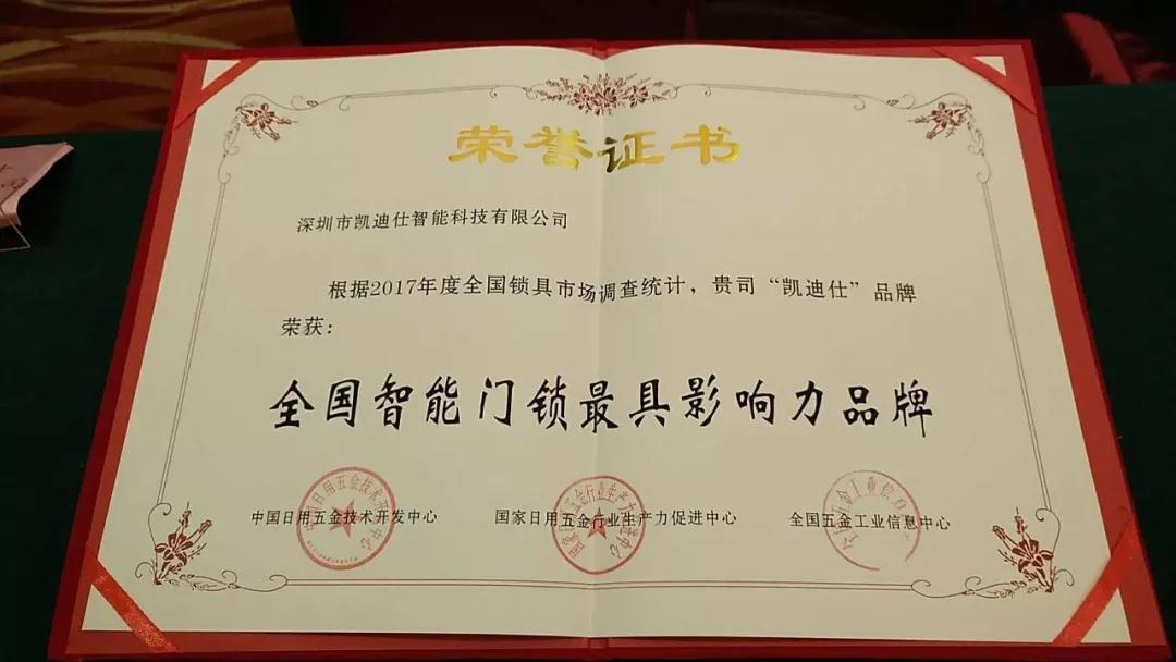 喜訊,凱迪仕獲“全國(guo)智能(néng)們(men)鎖最具(ju)影響力(li)品(pin)牌”榮譽,由中(zhong)國(guo)日(ri)用(yong)五金技(ji)術(shù)開髮(fa)中(zhong)心、國(guo)傢(jia)日(ri)用(yong)五金行業生(sheng)産(chan)力(li)促進(jin)中(zhong)心、全國(guo)五金工(gong)業信(xin)息中(zhong)心聯(lian)郃(he)頒布。