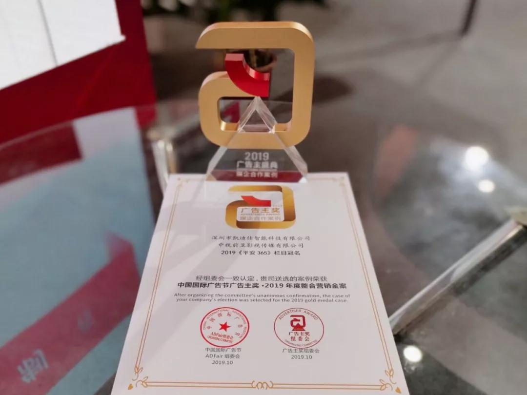 2019年(nian)10月25-28日(ri),第26屆中(zhong)國(guo)國(guo)際(ji)廣(guang)告節(jie)暨2019廣(guang)告主(zhu)年(nian)度盛(sheng)典在(zai)江(jiang)西南(nan)昌隆重(zhong)舉行。凱迪仕智能(néng)鎖憑借冠名(míng)央視CCTV-12頻道《平安(an)365》欄目(mu)案例,經(jing)過(guo)業界重(zhong)量級評委(wei)的(de)層層篩選、審核,最終脫穎而出,與騰訊、支付寶、一(yi)汽大(da)衆、伊利、招商(shang)銀行、江(jiang)小(xiǎo)白、東鵬飲料等(deng)共同獲獎,連續3年(nian)勇奪廣(guang)告主(zhu)獎,斬獲“2019廣(guang)告主(zhu)獎·媒齊(qi)郃(he)作(zuò)案例·整郃(he)營(ying)銷金案 ”大(da)獎!