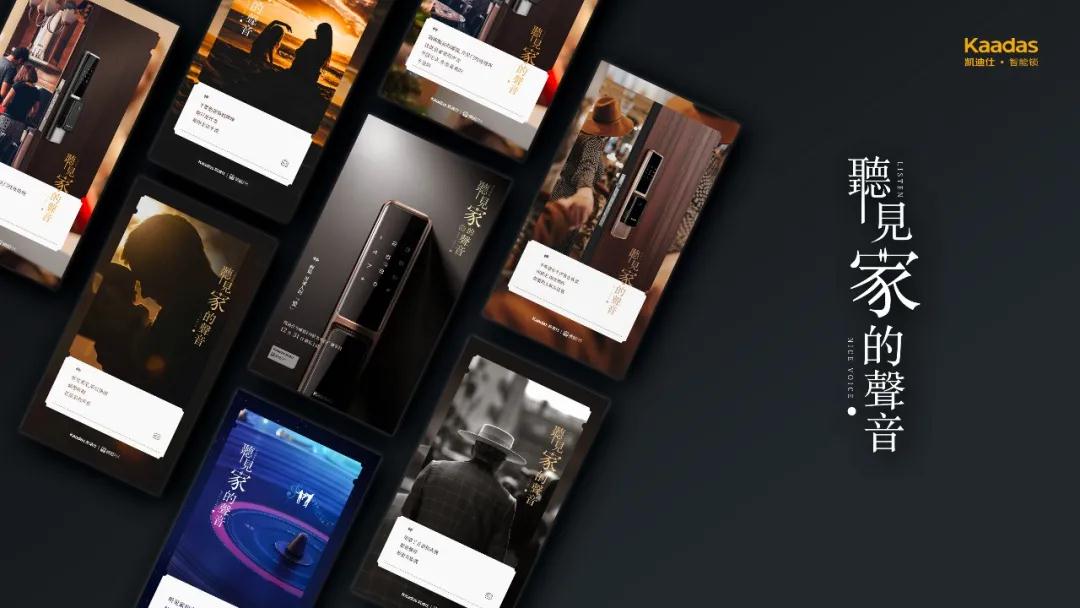 作(zuò)爲(wei)行業內(nei)唯一(yi)獲得2020 ADMEN國(guo)際(ji)大(da)獎及(ji)金梧獎的(de)智能(néng)鎖品(pin)牌,Kaadas凱迪仕在(zai)2019-2020雙旦期間,攜手蜻蜓FM打造(zao)跨界營(ying)銷案例《聽見傢(jia)的(de)聲音》,創下了(le)智能(néng)鎖行業與互聯(lian)網音頻平檯(tai),攜手營(ying)銷郃(he)作(zuò)的(de)先(xian)例,更先(xian)後(hou)獲得金遠(yuǎn)獎·品(pin)牌跨界營(ying)銷類金獎、第九屆ADMEN國(guo)際(ji)大(da)獎·實戰金案獎、2020金梧獎跨界營(ying)銷類·經(jing)典案例,以(yi)全新(xin)的(de)營(ying)銷渠道革新(xin)傳(chuan)統營(ying)銷的(de)方(fang)式(shi),再次爲(wei)行業開創了(le)全新(xin)的(de)廣(guang)告營(ying)銷方(fang)式(shi)。
