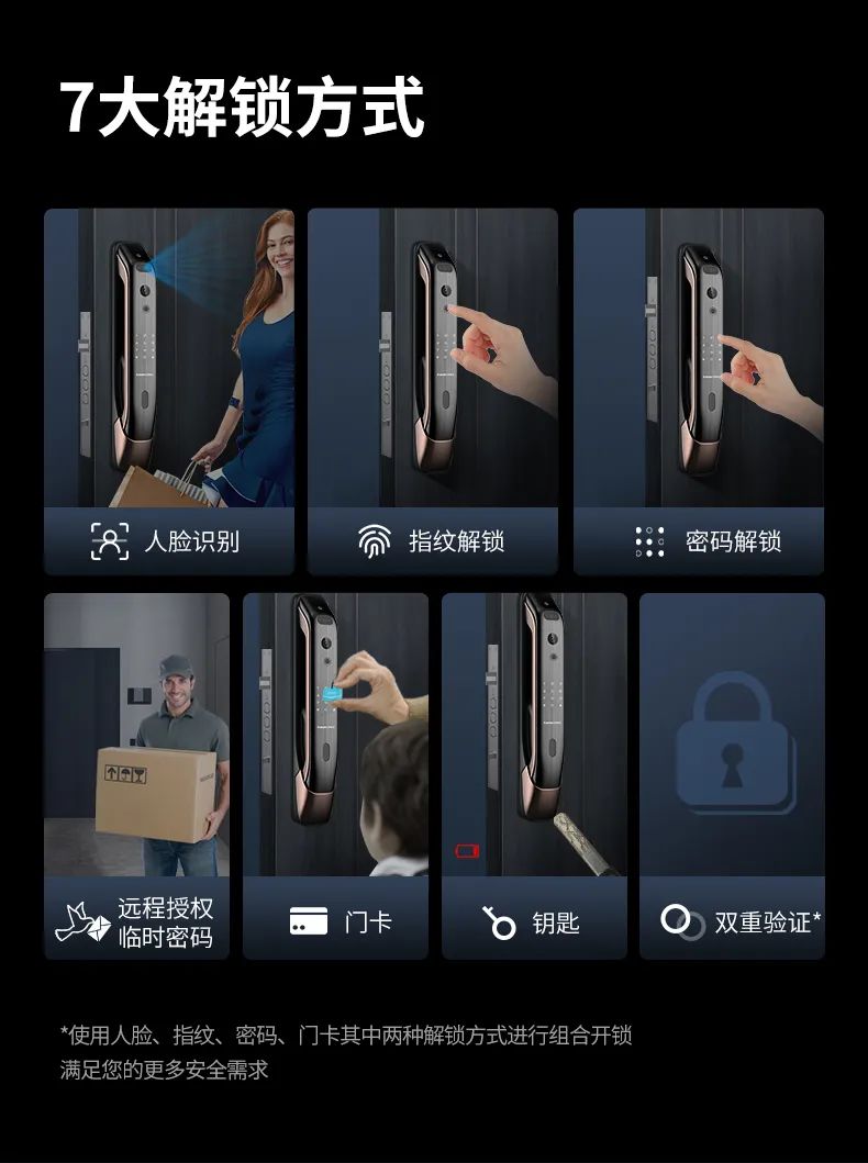 3D人(ren)臉、指紋、密碼、卡片等(deng)解鎖方(fang)式(shi),都需要在(zai)智能(néng)鎖面闆上進(jin)行操作(zuò)錄入。