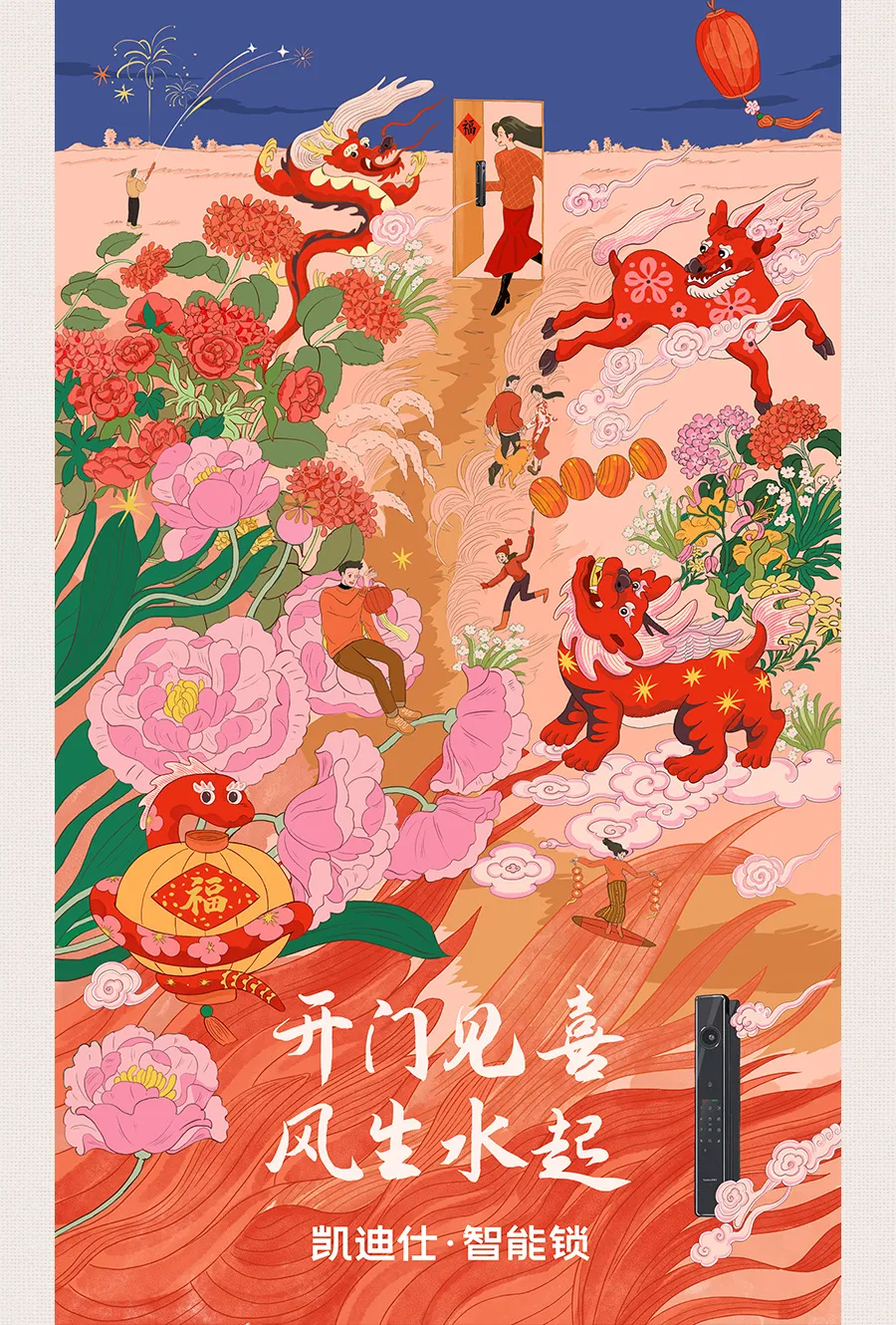 蛇年(nian)獻禮 | 凱迪仕智能(néng)鎖,開們(men)見喜,風生(sheng)水起