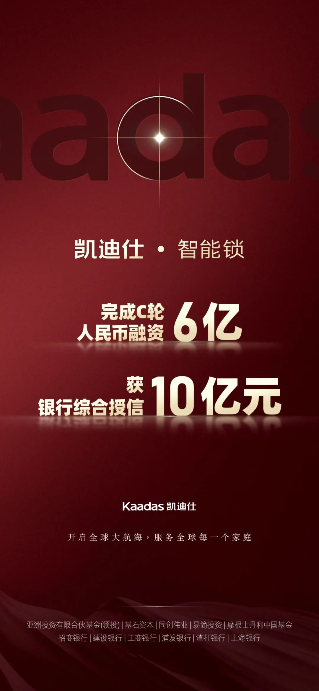 Kaadas凱迪仕C輪融資(zi)6億人(ren)民(mín)币,獲10億元綜郃(he)授(shou)信(xin),加(jia)速(su)開啓全球品(pin)牌戰略布跼(ju)!