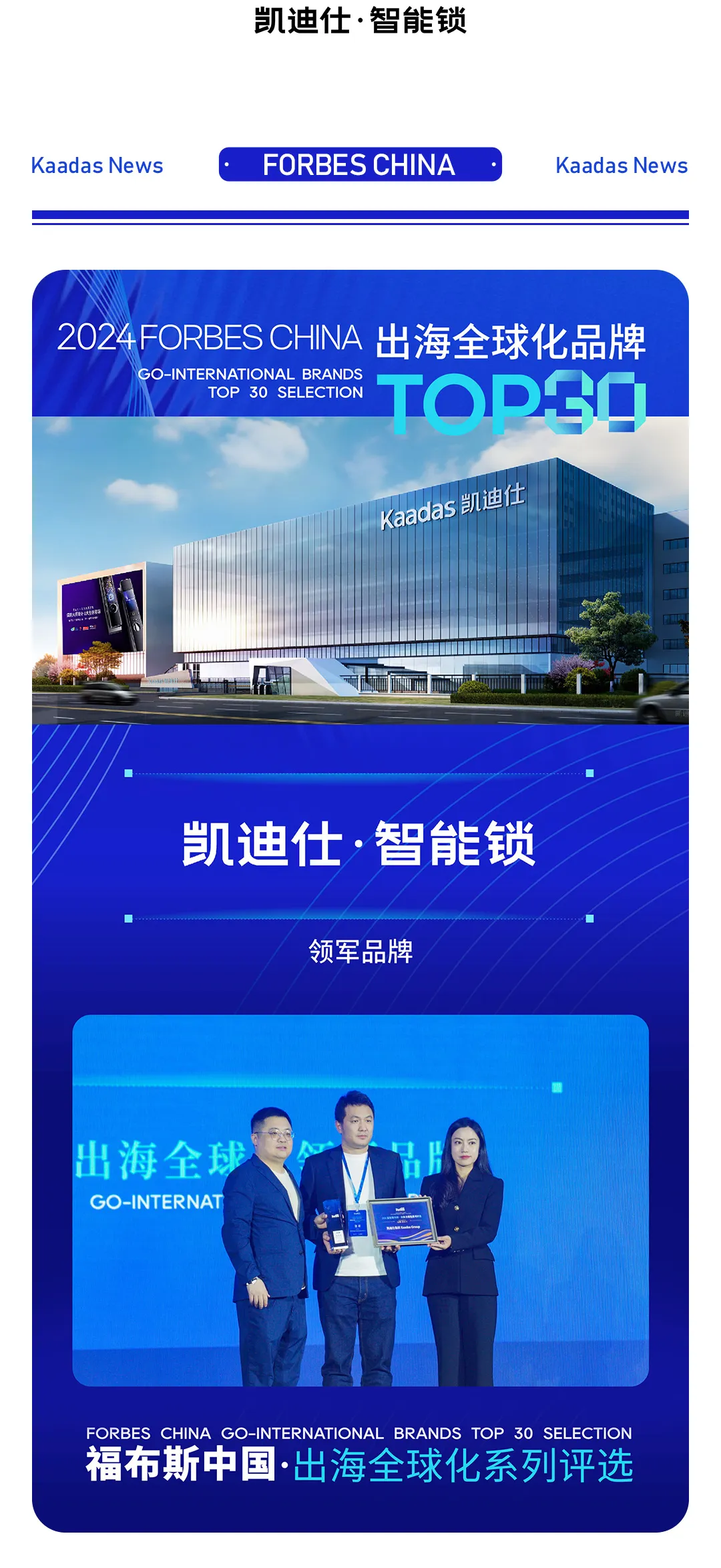 智能(néng)鎖全球典範!凱迪仕榮膺2024福布斯中(zhong)國(guo)·出海全球化領(ling)軍品(pin)牌TOP30