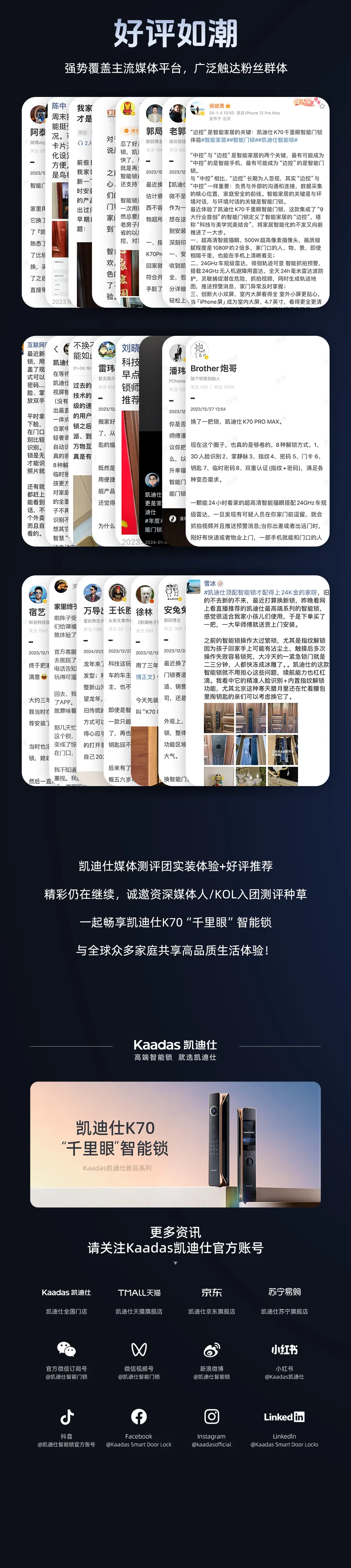 凱迪仕K70“千裏眼”智能(néng)鎖媒體(ti)測(ce)評團(tuán)首批(pi)亮相!百(bai)名(míng)資(zi)深媒體(ti)人(ren)/KOL實裝(zhuang)測(ce)評推薦!